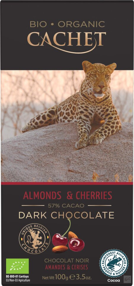 Minőségi belga bio étcsokoládé tábla cseresznyével és mandulával