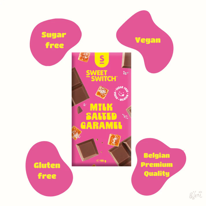 vegán, gluténmentes "milk salted caramel", hozzáadott cukor nélkül, édesítőszerrel