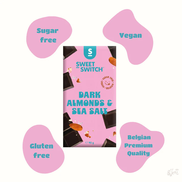 Összetevők: (édesítőszer: izomalt, kakaómassza, kakaóvaj, mandula 10%, kakaópor, tengeri só 0,5%, emulgeálószer: napraforgó lecitin, természetes vanília kivonat, édesítőszer: szteviol glikozidok sztíviából