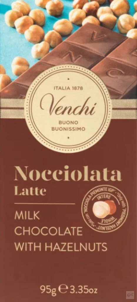 Összetevők: piemonti mogyoró 25%, cukor, teljes tejpor, kakaóvaj, kakaómassza, vízmentes tejzsír, emulgeálószer:szójalecitin, természetes vanília aroma