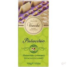 Összetevők: cukor, pörkölt pisztácia 25%, pisztácia paszta 18,8%, kakaóvaj, teljes tejpor, tejsavópor, emulgeálószer: szójalecitin, só 0,2%, természetes vanília aroma